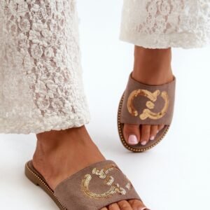 Damskie klapki zostały wykonane z eko zamszu. Osadzone na płaskim obcasie. Ozdobne cekiny na pasku dodają uoku. Miękka wkładka Comfort pozwoli na wygodne użytkowanie obuwia nawet przez cały dzień. Idealne do casualowych stylizacji!