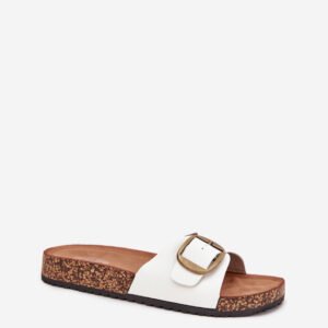 Klapki damskie z eko skóry, osadzone na korkowej platformie, to połączenie stylu i komfortu. Profilowana eko zamszowa wkładka zapewnia wygodę przez cały dzień, a regulowany pasek z klamrą umożliwia idealne dopasowanie do stopy. Doskonałe do codziennych stylizacji, świetnie komponują się z sukienkami, spódnicami czy spodniami.