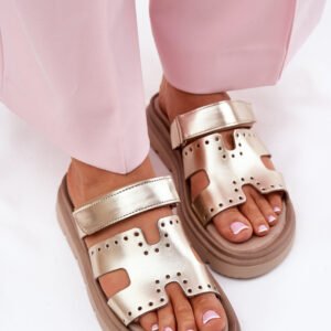 Damskie klapki wykonane z naturalnej skóry to idealny wybór na ciepłe dni. Osadzone na platformie, zapewniają wygodę i stabilność przez cały dzień. Zapięcie na rzep umożliwia lepsze dopasowanie, zwiększając stabilizację stopy. Na pasku wycięcia. Te klapki łączą elegancję z nowoczesnym stylem, doskonale komponując się z letnimi stylizacjami.