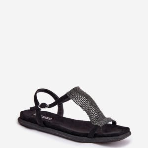 Eleganckie płaskie sandały damskie to perfekcyjny wybór na wyjątkowe okazje. Zapinane na sprzączkę z regulowanym paskiem, zapewniają idealne dopasowanie do stopy. Model wyróżnia się efektownym paskiem ozdobionym kryształkami, które dodają im szyku i blasku. Miękka, eko skórzana wkładka gwarantuje komfort przez cały dzień. Te sandały będą doskonałym uzupełnieniem eleganckich stylizacji na uroczystości i wieczorne wyjścia.