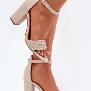 Sandały damskie wykonane z eko skóry to elegancka propozycja na ciepłe dni. Osadzone na obcasie w formie słupka, zapewniają stabilność i wygodę. Z przodu sandałów znajduje się pasek z plecionką, który dodaje im wyjątkowego charakteru. Zapinane na sprzączkę, umożliwiają idealne dopasowanie do stopy, a skórzana wkładka zapewnia komfort przez cały dzień. Idealne na różne okazje.
