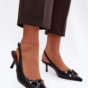Sandały damskie wykonane z eko skóry to stylowa propozycja na wyjątkowe okazje. Zakryte, szpiczaste noski nadają im klasycznego i kobiecego charakteru, a ozdobny detal z przodu przyciąga wzrok i podkreśla elegancję modelu. Smukła szpilka pięknie wysmukla sylwetkę i dodaje całości szyku. Model zapinany na sprzączkę z regulowanym paskiem pozwala na idealne dopasowanie do stopy, zapewniając komfort i stabilność podczas noszenia. Sandały doskonale sprawdzą się jako uzupełnienie wielu stylizacji, eleganckich sukienek oraz kreacji na specjalne okazje.