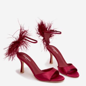 Sandały damskie wykonane z delikatnego materiału tekstylnego to propozycja dla kobiet, które lubią wyróżniać się stylem. Model osadzony na smukłej szpilce podkreśla nogi i dodaje sylwetce elegancji. Zapięcie wokół kostki na pasek ze sprzączką zapewnia stabilność i efektowne wyeksponowanie stopy. Największym atutem tego modelu są ozdobne pióra, które nadają butom lekkości, oryginalności i wyjątkowego charakteru. To idealne sandały na specjalne okazje, wieczorne wyjścia czy imprezy, podczas których chcesz olśniewać swoim lookiem.