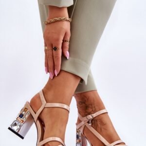 Te eleganckie sandały zostały wykonane z wysokiej jakości eko skóry. Model ten posiada zapinanie na regulowany pasek ze sprzączką z wiszącą ozdobą. Sandałki z paseczkami są niezwykle przewiewne i wygodne. Miękka wkładka z naturalnej skóry zapewni komfortowe użytkowanie. Sandałki osadzono na obcasie w postaci słupka z mieniącymi się kamieniami.