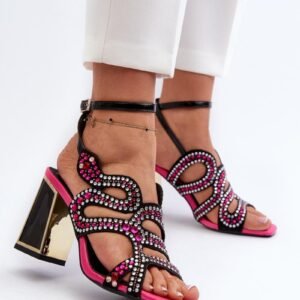 Eleganckie sandały damskie ze zdobieniem. Osadzone na obcasie w postaci słupka. Zapinane na regulowany pasek ze sprzączką. Miękka, skórzana wkładka zagwarantuje wygodę podczas użytkowania. Model ten z pewnością doda blasku Twojej stylizacji!