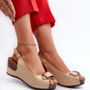 Sandały damskie wykonane z eko skóry. Osadzone na koturnie. Zapinane na regulowany pasek ze sprzączką, umożliwiają precyzyjne dopasowanie do stopy. Miękka wkładka typu Comfort z efektem poduszki jest niezwykle wygodna podczas użytkowania.