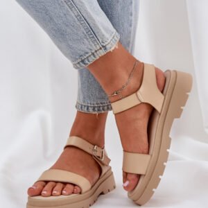 Komfortowe sandały damskie zostały zaprojektowane na płaskim obcasie oraz platformie. Wykonane z ekologicznej skóry, posiadają szeroki pasek, który stabilizuje stopę, zapobiegając jej przesuwaniu. Dzięki miękkiej wkładce, obuwie to gwarantuje wygodę nawet podczas całodziennego noszenia! Model zapinany jest wokół kostki za pomocą regulowanego paska z klamrą. To doskonały wybór na ciepłe, letnie dni.