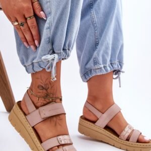 Klasyczne sandałki damskie zostały wykonane z eko skóry. Model ten został osadzony na koturnie i platformie. Miękka wkładka z naturalnego zamszu dodatkowo posiada perforację. Świetny model na upalne dni. Sandałki posiadają zapięcie na rzep. Ten model powinien być Twój!