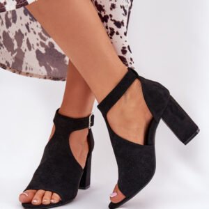 Sandały damskie z eko zamszu, ozdobione subtelnym ażurowym wzorem. Osadzone na stabilnym obcasie w formie słupka, zapewniają wygodę i elegancki wygląd. Model zapinany na sprzączkę, doskonale sprawdzi się na różne okazje.