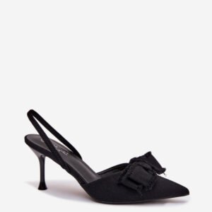 Sandały damskie wykonane z materiału tekstylnego to wyjątkowa propozycja na specjalne okazje. Smukła szpilka pięknie podkreśla sylwetkę, a szpiczaste noski optycznie wydłużają nogi. Ozdobna kokarda z przodu nadaje całości kobiecego uroku. Ten model doskonale sprawdzi się podczas uroczystości, przyjęć oraz wieczornych wyjść, stanowiąc stylowe dopełnienie wielu stylizacji.