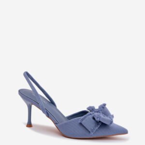Sandały damskie wykonane z materiału tekstylnego to wyjątkowa propozycja na specjalne okazje. Smukła szpilka pięknie podkreśla sylwetkę, a szpiczaste noski optycznie wydłużają nogi. Ozdobna kokarda z przodu nadaje całości kobiecego uroku. Ten model doskonale sprawdzi się podczas uroczystości, przyjęć oraz wieczornych wyjść, stanowiąc stylowe dopełnienie wielu stylizacji.