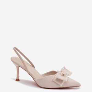 Sandały damskie wykonane z materiału tekstylnego to wyjątkowa propozycja na specjalne okazje. Smukła szpilka pięknie podkreśla sylwetkę, a szpiczaste noski optycznie wydłużają nogi. Ozdobna kokarda z przodu nadaje całości kobiecego uroku. Ten model doskonale sprawdzi się podczas uroczystości, przyjęć oraz wieczornych wyjść, stanowiąc stylowe dopełnienie wielu stylizacji.