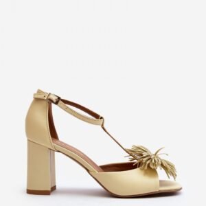 Sandały damskie wykonane ze skóry naturalnej. Osadzone na obcasie w postaci słupka. Zapinane na regulowany paseczek ze sprzączką. Model z zakrytą piętą. Z przodu ozdoba. Skórzana wkładka zapewni wygodę podczas użytkowania. Fason ten dopasujesz do eleganckich spodni, spódnic i sukienek.