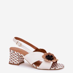 Sandały damskie od marki Laura Messi, wykonane z naturalnej skóry, to elegancka propozycja na różne wyjątkowe okazje. Obcas w formie słupka zapewnia stabilność, a zapinane na sprzączkę umożliwiają idealne dopasowanie do stopy. Model wyróżnia się dwoma materiałowymi kwiatami z przodu, które dodają subtelnego, kobiecego uroku. Doskonałe na wesela, przyjęcia czy inne eleganckie wydarzenia.