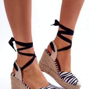 Modne sandały na koturnie i platformie z jutową plecionką. Wykonane z miękkiego eko zamszu. Model ten posiada wiązanie wokół łydki. Wkładka z eko skóry zapewni komfort podczas użytkowania. Podeszwa została wykonana z gumowego tworzywa i jest antypoślizgowa. Ten model z pewnością wzbogaci Twoją letnią garderobę!