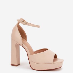 Sandały damskie wykonane z eko skóry. Osadzone na wysokim obcasie typu słupek i platformie, które zapewniają stabilność i wygodę. Zapinane na sprzączkę z regulowanym paskiem, co umożliwia idealne dopasowanie do stopy. Te sandały to doskonały wybór na wieczorne wyjścia oraz różne uroczystości. Świetnie komponują się z sukienkami wieczorowymi, koktajlowymi i eleganckimi spodniami.