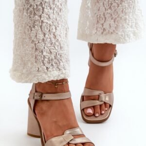 Modne, damskie sandały zostały wykonane z naturalnej skóry. Model ten posiada miękką wkładkę, która jest niezwykle wygodna podczas użytkowania. Sandałki osadzono obcasie w postaci trójkątnego słupka. Są zapinane na regulowany pasek ze sprzączką. Idealne obuwie na różnego rodzaju uroczystości czy ważne spotkania w letnie dni!