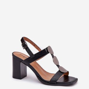 Stylowe sandały damskie wykonane z eko skóry, osadzone na słupkowym obcasie. Regulowany pasek ze sprzączką zapewnia idealne dopasowanie do stopy. Z przodu subtelne ozdoby dodają im wyjątkowego uroku. Doskonały wybór na letnie dni, zarówno do codziennych, jak i bardziej eleganckich stylizacji.