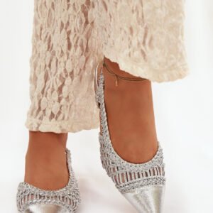 Stylowe sandały damskie wykonane z efektownej plecionki. Niski obcas typu klocek zapewnia stabilność i komfort noszenia, idealnie sprawdzając się podczas codziennego użytkowania. Zakryte, szpiczaste noski nadają modelowi kobiecego charakteru.  Sandały doskonale uzupełnią zarówno letnie stylizacje, jak i bardziej eleganckie zestawy. To idealna propozycja dla kobiet, które cenią wygodę, modny wygląd i subtelne detale.