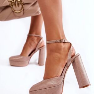 Świetne damskie sandały wykonane z materiału pokrytego mieniącym się brokatem. Zapinane wokół kostki na sprzączkę. Sandałki osadzono na delikatnej platformie oraz obcasie w postaci słupka. Niezwykle modny fason z kwadratowym noskiem. Ten model to idealne rozwiązanie na imprezę ze znajomymi czy randkę. Nie czekaj i kup już dziś!