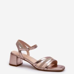 Urocze sandały damskie z eko skóry będą idealnym wyborem na różne uroczystości. Z przodu trzy połączone paseczki. Obcas w formie niskiego klocka zapewnia stabilność i wygodę podczas noszenia. Zapinane na regulowany pasek ze sprzączką, gwarantują odpowiednie dopasowanie.