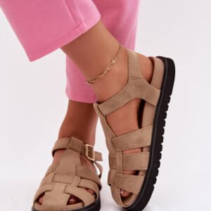 Sandały damskie inspirowane stylem rzymianek to połączenie letniej lekkości i wygody. Wykonane z eko zamszu prezentują się stylowo i elegancko, a platforma gwarantuje komfort oraz pewność kroku. Pasek z możliwością regulacji, zapinany na złotą klamrę, pozwala na dopasowanie obuwia do stopy. To idealny wybór do codziennych, letnich zestawów, które łączą modny wygląd z funkcjonalnością.