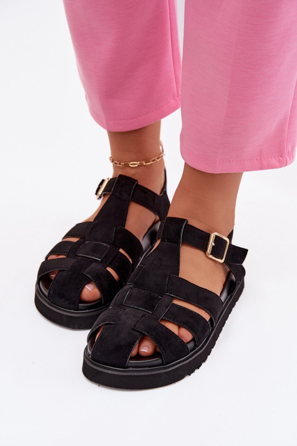 Sandały damskie inspirowane stylem rzymianek to połączenie letniej lekkości i wygody. Wykonane z eko zamszu prezentują się stylowo i elegancko, a platforma gwarantuje komfort oraz pewność kroku. Pasek z możliwością regulacji, zapinany na złotą klamrę, pozwala na dopasowanie obuwia do stopy. To idealny wybór do codziennych, letnich zestawów, które łączą modny wygląd z funkcjonalnością.