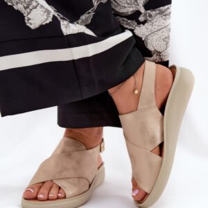 Sandały damskie marki Jezzi. Wykonane z wysokiej jakości eko skóry. Osadzone na delikatnym koturnie, zapewniają stabilność i komfort podczas noszenia. Zapinane na regulowany pasek ze sprzączką, gwarantują idealne dopasowanie do stopy. Z przodu dwa przeplatające się szerokie paski. Lekkie i wygodne, doskonale sprawdzą się w różnych letnich stylizacjach.