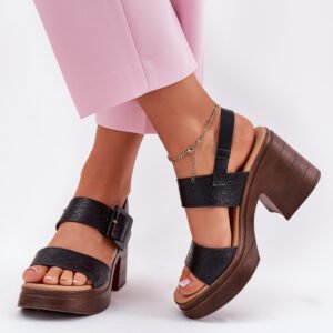 Damskie sandały marki Vinceza to stylowy wybór na wyjątkowe okazje. Wykonane z eko skóry, łączą elegancję z nowoczesnym wyglądem. Osadzone na masywnym obcasie i platformie, zapewniają stabilność i komfort przez cały dzień. Zapinane na klamrę z regulowanym paskiem z przodu, umożliwiają idealne dopasowanie do stopy. Skórzana wkładka gwarantuje wygodę i odpowiednią amortyzację. Te sandały doskonale komponują się z eleganckimi stylizacjami, będąc świetnym wyborem na wieczorne wyjścia i specjalne uroczystości.