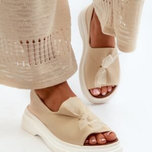 Damskie sandały wykonane ze skóry naturalnej to elegancki i komfortowy wybór na ciepłe dni. Osadzone na grubej, solidnej podeszwie, zapewniają stabilność i wygodę noszenia przez cały dzień. Miękka, skórzana wkładka dodatkowo zwiększa komfort użytkowania. Przód sandałów ozdobiony uroczą kokardką dodaje im subtelnego uroku i sprawia, że stanowią stylowy element każdej letniej stylizacji.