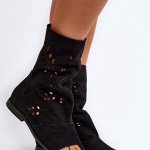 Te wyjątkowe sandały na płaskim obcasie to połączenie elegancji i wygody. Wykonane z wysokiej jakości naturalnego zamszu zapewniają trwałość i komfort noszenia. Ich cholewka, zapinana na zamek, ozdobiona jest ażurowym wzorem, który nadaje im delikatności i stylu. Doskonale sprawdzą się zarówno na co dzień, jak i na specjalne okazje, dodając Twojej stylizacji wyjątkowego uroku.