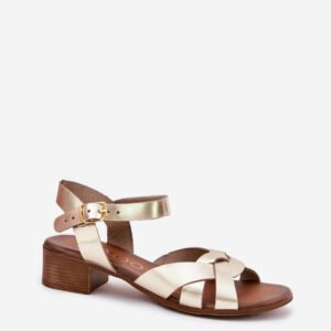 Sandały wykonane z naturalnej skóry to elegancka i komfortowa opcja na ciepłe dni. Osadzone na niskim obcasie, zapewniają wygodę i stabilność podczas chodzenia. Zapinane na regulowany pasek, co pozwala na idealne dopasowanie do stopy. Z przodu przeplatające się paseczki. Te sandały to doskonały wybór na letnie dni!