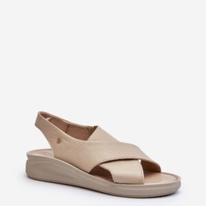 Te sandałki damskie to połączenie wygody i stylu, które z pewnością przypadnie Ci do gustu! Wykonane z naturalnej skóry, zapewniają trwałość i komfort noszenia. Model wsuwany, z dodatkową gumką. Ozdobny emblemat z boku cholewki dodaje im wyjątkowego charakteru, nadając im subtelny, elegancki akcent. Sandały zostały osadzone na platformie oraz lekkim koturnie, co nie tylko dodaje im stylowego wyglądu, ale także zapewnia stabilność i komfort podczas chodzenia. Model ten jest niezwykle praktycznym i modnym dodatkiem do letniej garderoby, idealnym zarówno na codzienne spacery, jak i na bardziej formalne okazje.