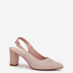 Sandały damskie wykonane z eko skóry, ozdobione ażurowym wzorem, to elegancki wybór na ciepłe dni. Szpiczaste noski subtelnie wysmuklają nogi, dodając im smukłości. Zapinane na sprzączkę z regulowanym paskiem, pozwalają na idealne dopasowanie do stopy. Obcas w formie słupka zapewnia stabilność, a całość łączy styl i wygodę, doskonale komponując się z letnimi sukienkami, spódnicami czy eleganckimi spodniami.
