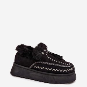Śniegowce damskie wykonane z eko zamszu to modna i funkcjonalna propozycja na zimowe dni. Model osadzony na platformie zapewnia wygodę oraz doskonałą izolację od chłodnego podłoża. Buty ozdobione są efektownymi przeszyciami, futerkiem oraz frędzlami, które nadają im oryginalnego i stylowego charakteru. To idealny wybór dla kobiet ceniących ciepło, komfort i modny wygląd, świetnie sprawdzą się zarówno podczas spacerów, jak i w codziennych, zimowych stylizacjach.