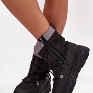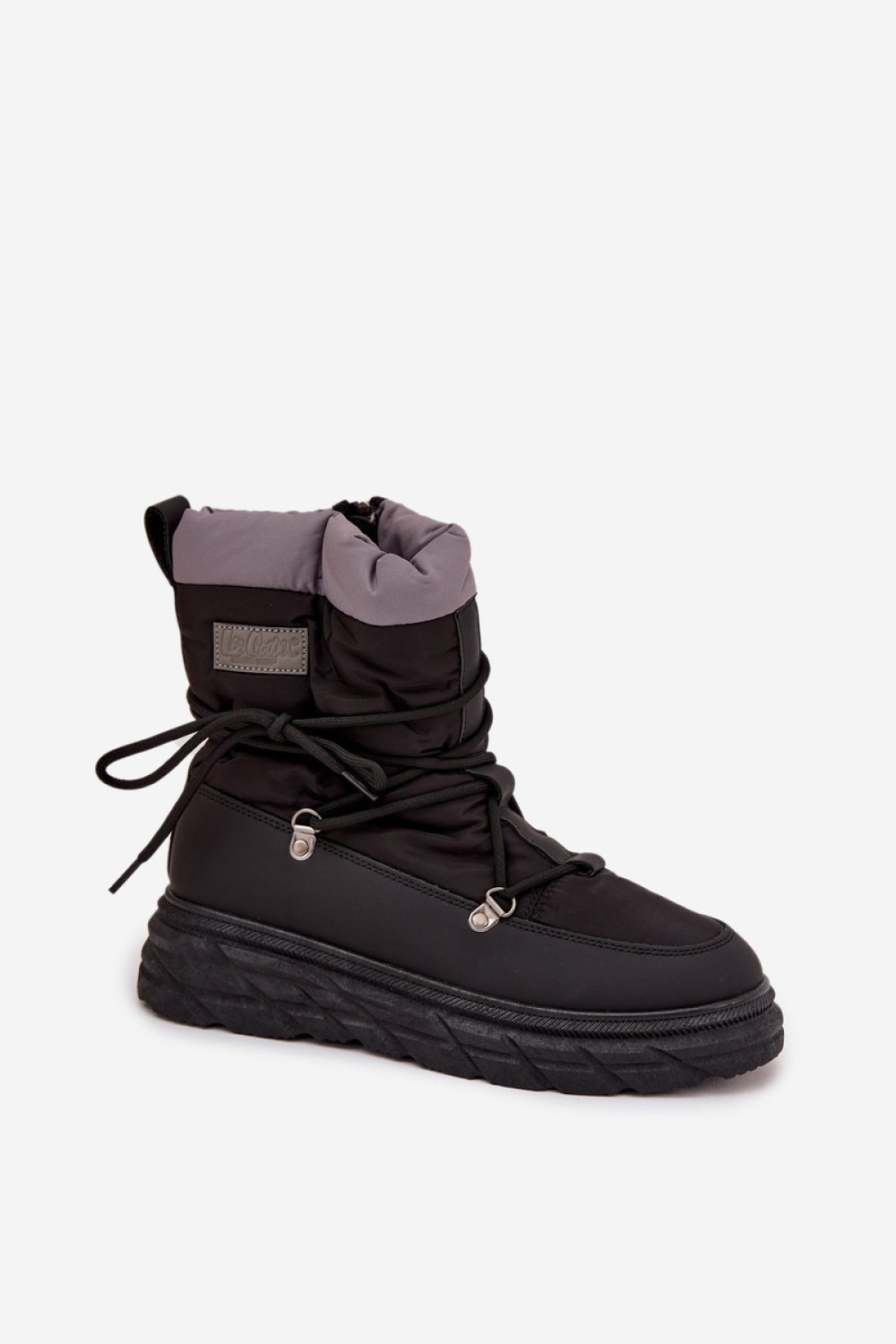 Śniegowce damskie marki Lee Cooper to doskonały wybór na zimowe dni ? łączą modny wygląd z funkcjonalnością i komfortem noszenia. Wykonane z wytrzymałego materiału tekstylnego, zapewniają ochronę przed chłodem i wilgocią, a jednocześnie prezentują się stylowo. Model został osadzony na platformie, która gwarantuje stabilność i doskonałą izolację od zimnego podłoża. Wnętrze butów ocieplone miękkim futerkiem zapewnia ciepło i wygodę nawet w bardzo niskich temperaturach. Śniegowce są zapinane na zamek, co ułatwia ich zakładanie, a dodatkowe wiązanie z przodu pozwala idealnie dopasować obuwie do stopy. To praktyczny i modny model, idealny na zimowe spacery, wyjazdy w góry czy codzienne stylizacje w chłodne dni.