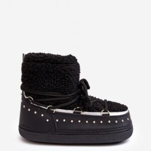 Wyjątkowe, damskie śniegowce zostały wykonane z materiału odpornego na zimno i wiatr. Cholewka ze sztucznym kożuszkiem i ćwiekami świetnie sprawdzi się w sezonie jesienno-zimowym. Model klasycznie wsuwany z dodatkowym sznurowaniem. Śniegowce zostały osadzone na masywnej platformie. Posiadają w środku ocieplenie w postaci pianki i koca obuwniczego, które zapewniają wysoką ochronę w chłodne dni.