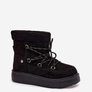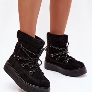 Śniegowce damskie wykonane z eko zamszu to praktyczny i stylowy wybór na zimowe dni. Osadzone na solidnej platformie z gumowego tworzywa, zapewniają dobrą izolację od zimnego podłoża i stabilność podczas chodzenia. Model jest wsuwany, a dodatkowe wiązanie umożliwia lepsze dopasowanie i dodaje modnego charakteru. Ocieplane wnętrze gwarantuje ciepło i komfort nawet przy niskich temperaturach. Idealne do codziennych, zimowych stylizacji.