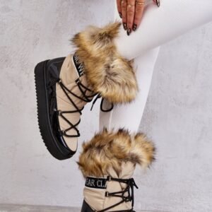 Modne śniegowce zostały wykonane z materiału odpornego na zimno i wiatr. Cholewka zakończona sztucznym futerkiem. Model klasycznie sznurowany. Śniegowce zostały osadzone na masywnej platformie. Posiadają w środku ocieplenie w postaci grubego futerka. Dekorowane tasiemką z nadrukiem. Niezwykle ciepłe, a zarazem stylowe. Powinnaś je mieć!