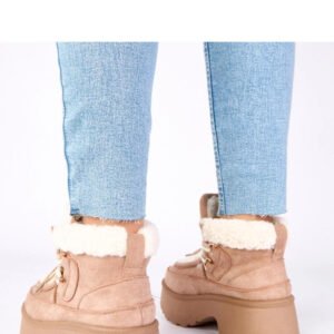 Śniegowce z futerkiem, wiązane na wysokiej platformie, to idealne obuwie na zimowe dni, łączące styl, wygodę i ciepło. Wykonane z wysokiej jakości skóry ekologicznej zamszowej, prezentują się elegancko i nowocześnie, a jednocześnie są odporne na codzienne użytkowanie. Miękkie futerko dodaje przytulnego charakteru i zapewnia dodatkową ochronę przed zimnem. Okrągły nosek gwarantuje komfort noszenia, a wiązanie pozwala perfekcyjnie dopasować buty do stopy, zwiększając stabilność podczas chodzenia. Wysoka cholewka o wysokości 10 cm oraz platforma o wysokości 6,5 cm chronią stopę i kostkę, a jednocześnie dodają sylwetce lekkości i subtelnie ją wydłużają. Wkładka z miękkiej tkaniny podnosi komfort użytkowania, dzięki czemu śniegowce sprawdzą się zarówno na długie spacery, jak i codzienne wyjścia w zimowej aurze, łącząc funkcjonalność z modnym wyglądem.