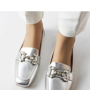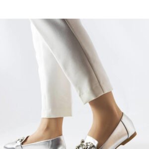 Srebrne mokasyny z cyrkoniami Marechal to eleganckie buty, które doskonale uzupełnią letnią stylizację. Wykonane z wysokiej jakości skóry ekologicznej, zapewniają wygodę i trwałość. Buty posiadają ozdobne cyrkonie, które dodają im subtelnego blasku. Podeszwa wykonana z tworzywa sztucznego w kolorze brązowym zapewnia stabilność i komfort noszenia. Model ten posiada wsuwane zapięcie, dzięki czemu łatwo się je zakłada i zdejmuje. Idealne do noszenia na co dzień, na spacer czy do biura. Kolekcja Lato.