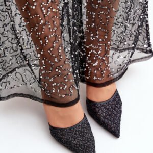 Stylowe szpilki damskie ozdobione drobinkami brokatu, które nadają im wyjątkowego blasku. Model ten posiada szpiczaste noski, które optycznie wysmuklają nogi, oraz miękką wkładkę wykonaną z eko skóry, zapewniającą komfort podczas noszenia. Te eleganckie buty doskonale sprawdzą się na wieczorne wyjścia, uroczystości czy sylwestrowe imprezy, dodając Twojej stylizacji niepowtarzalnego uroku i klasy.