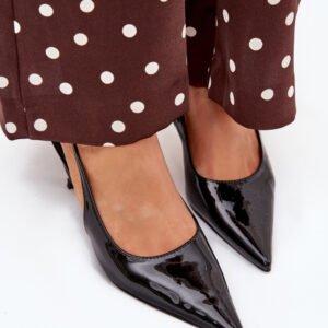 Lakierowane czółenka damskie ze szpiczastymi noskami i odkrytymi piętami to elegancka propozycja, która łączy klasykę z nowoczesnym akcentem. Szpiczaste noski wydłużają nogi, nadając sylwetce smukłości. Odkryte pięty wprowadzają lekkość, czyniąc te czółenka idealnym wyborem na wieczorne wyjścia i specjalne okazje.