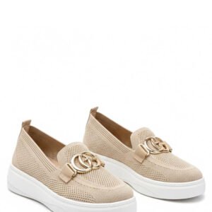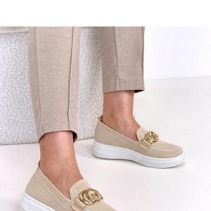Nowoczesne trampki z efektowną ozdobną klamerką na przodzie to stylowa propozycja dla osób, które cenią wygodę i oryginalne detale. Wykonane z wysokiej jakości tkaniny, są lekkie, przewiewne i doskonale sprawdzą się w codziennym użytkowaniu. Model posiada okrągły nosek, który zapewnia komfort oraz swobodę dla palców. Niska cholewka nadaje butom uniwersalny charakter, dzięki czemu świetnie komponują się zarówno z jeansami, jak i sportowymi czy casualowymi stylizacjami. Platforma o wysokości 4 cm delikatnie podnosi sylwetkę, dodając kilku centymetrów wzrostu i jednocześnie gwarantując stabilność. Wsuwana konstrukcja ułatwia szybkie zakładanie i zdejmowanie obuwia. Wkładka wykonana z tkaniny zwiększa komfort noszenia oraz wspiera odpowiednią cyrkulację powietrza. To idealne trampki dla osób, które chcą połączyć sportowy luz z modnym, przyciągającym uwagę akcentem.