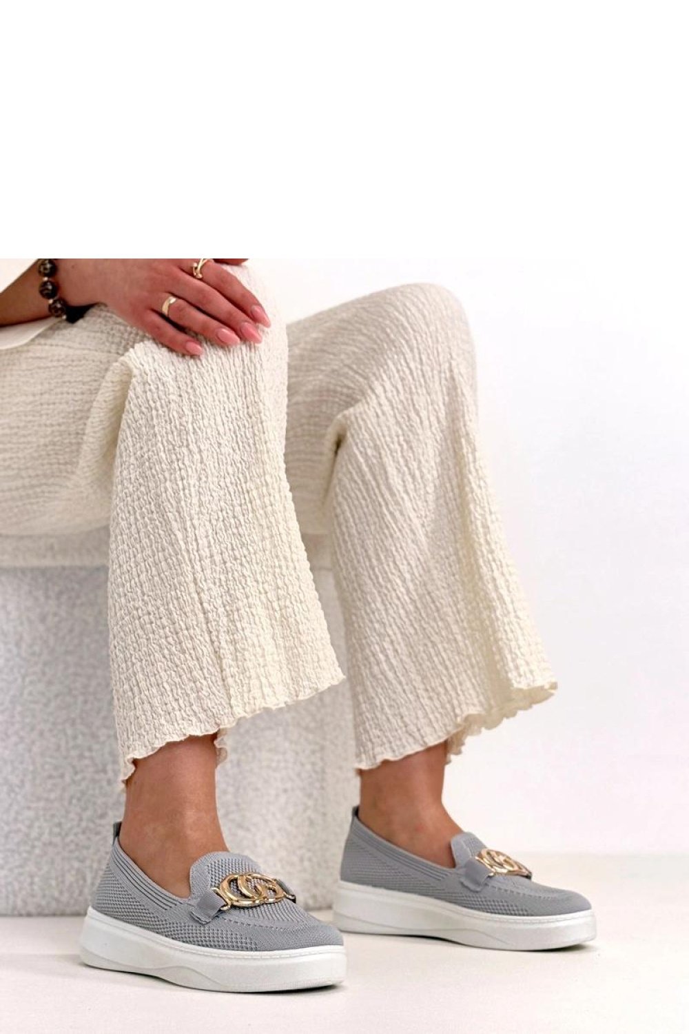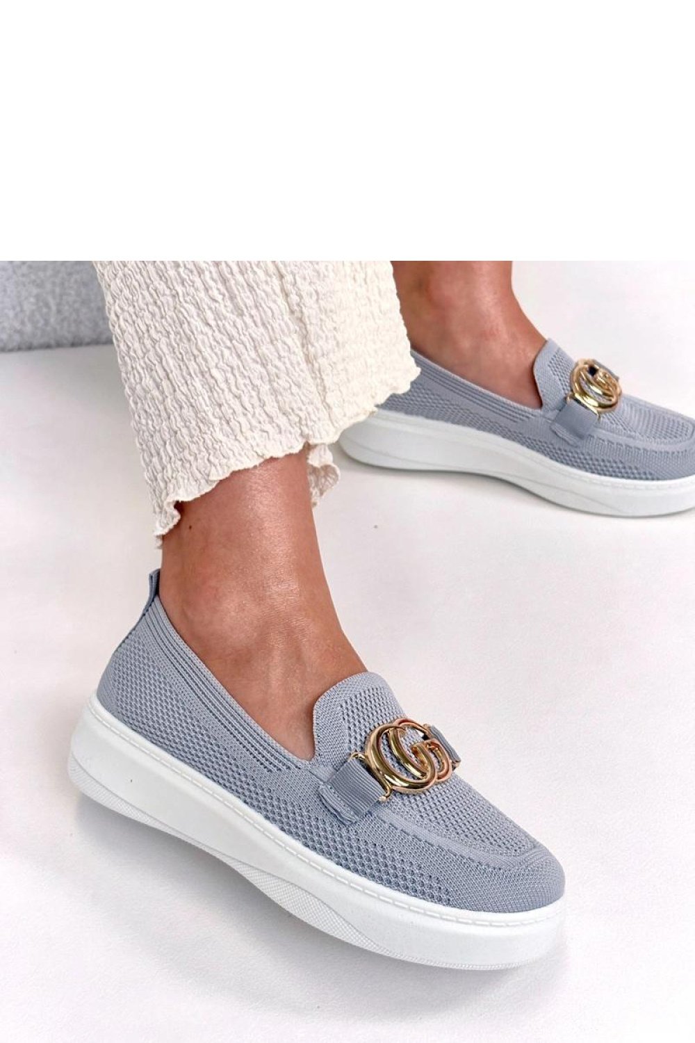 Nowoczesne trampki z efektowną ozdobną klamerką na przodzie to stylowa propozycja dla osób, które cenią wygodę i oryginalne detale. Wykonane z wysokiej jakości tkaniny, są lekkie, przewiewne i doskonale sprawdzą się w codziennym użytkowaniu. Model posiada okrągły nosek, który zapewnia komfort oraz swobodę dla palców. Niska cholewka nadaje butom uniwersalny charakter, dzięki czemu świetnie komponują się zarówno z jeansami, jak i sportowymi czy casualowymi stylizacjami. Platforma o wysokości 4 cm delikatnie podnosi sylwetkę, dodając kilku centymetrów wzrostu i jednocześnie gwarantując stabilność. Wsuwana konstrukcja ułatwia szybkie zakładanie i zdejmowanie obuwia. Wkładka wykonana z tkaniny zwiększa komfort noszenia oraz wspiera odpowiednią cyrkulację powietrza. To idealne trampki dla osób, które chcą połączyć sportowy luz z modnym, przyciągającym uwagę akcentem.