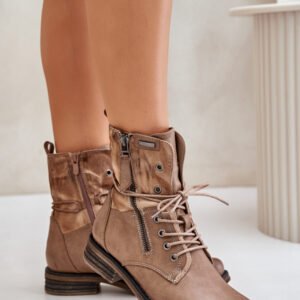 Damskie botki na płaskim obcasie to połączenie stylu i wygody, idealne na chłodniejsze dni. Posiadają zaokrąglone noski oraz podwójne zapięcie ? na zamek i sznurowanie, zapewniają łatwość zakładania i idealne dopasowanie do stopy. Wnętrze ocieplone kocem obuwniczym gwarantuje ciepło i komfort, dzięki czemu sprawdzą się doskonale w codziennych stylizacjach.