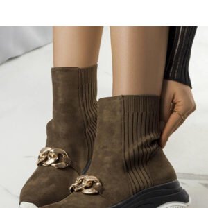 Zielone ocieplane botki z łańcuchem Ulster to idealny wybór na chłodniejsze dni jesienno-zimowe. Ich cholewka wykonana została z wysokiej jakości zamszowej skóry ekologicznej, z dodatkowymi wstawkami elastycznego materiału dla lepszego dopasowania i wygody. Dodatkowo, wnętrze butów wykończone jest ciepłym materiałem imitującym futerko, co zapewnia dodatkową ochronę przed zimnem. Botki posiadają zapięcie typu wsuwane, co sprawia, że są łatwe i wygodne w zakładaniu. Model Ulster jest nie tylko praktyczny, ale również modny – idealnie uzupełni każdą jesienno-zimową stylizację. Podeszwa butów wykonana jest z wytrzymałej gumy w kolorze czarnym. Numeracja jest standardowa, więc warto wybrać swój zwykły rozmiar. Idealne buty na każdą zimową okazję!