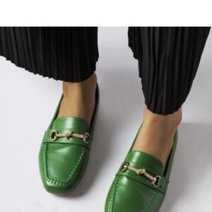 Zielone ozdobne mokasyny Docherty to doskonały wybór na letnie dni. Wykonane z gumy, zapewniają komfort i przewiewność dla stóp. Ich niski krój sprawia, że są lekkie i wygodne w noszeniu. Dedykowane dla stylowych kobiet, które cenią sobie modne obuwie, mokasyny te mają sztosowy design, który przyciąga uwagę i dodaje charakteru każdej stylizacji. Dzięki wsuwanej konstrukcji są łatwe w zakładaniu i zdejmowaniu. Kwadratowy nosek nadaje im unikalny wygląd i sprawia, że są jeszcze bardziej atrakcyjne. Materiał zewnętrzny to skóra ekologiczna zamszowa, podeszwa wykonana jest z gumy w beżowym kolorze. Idealne na letnią kolekcję!