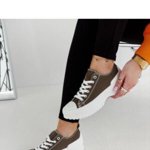 Zielone trampki na platformie Monteleone to doskonały wybór dla osób, które cenią sobie wygodę i modny design. Buty posiadają niski krój i sznurowane szycie, co pozwala na idealne dopasowanie do stopy. Dodatkowo, lekka platforma nadaje im nowoczesny wygląd. Trampki te świetnie sprawdzą się zarówno na co dzień, jak i na specjalne okazje, pasując do różnorodnych stylizacji. Wykonane z wysokiej jakości materiałów, są łatwe w utrzymaniu czystości. To idealny wybór dla osób, które szukają butów, które łączą w sobie styl, komfort i trwałość.