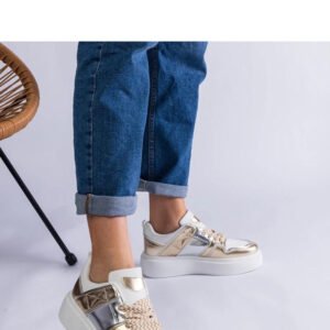 Złote sneakersy ze srebrnymi wstawkami Kimberly – Solea